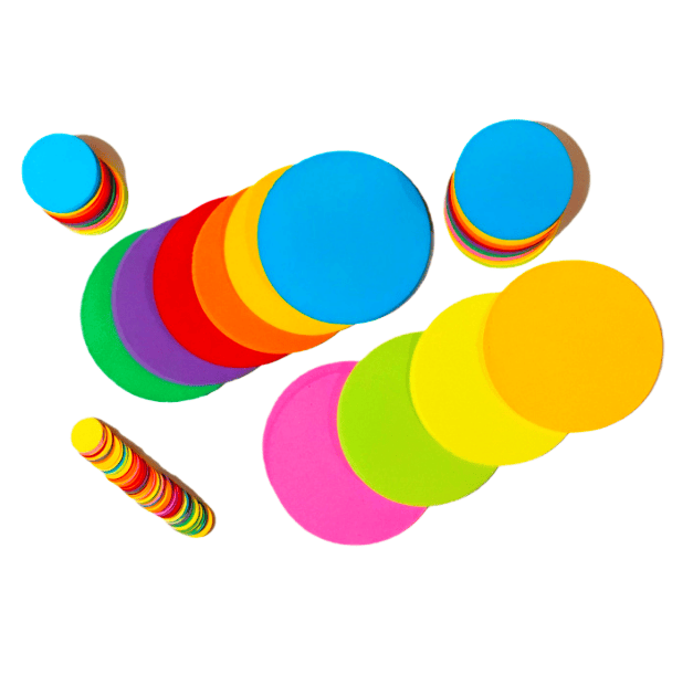 Papier do origami w kształcie kół o średnicy o 2 o 15 cm w kilkunastu różnych kolorach.